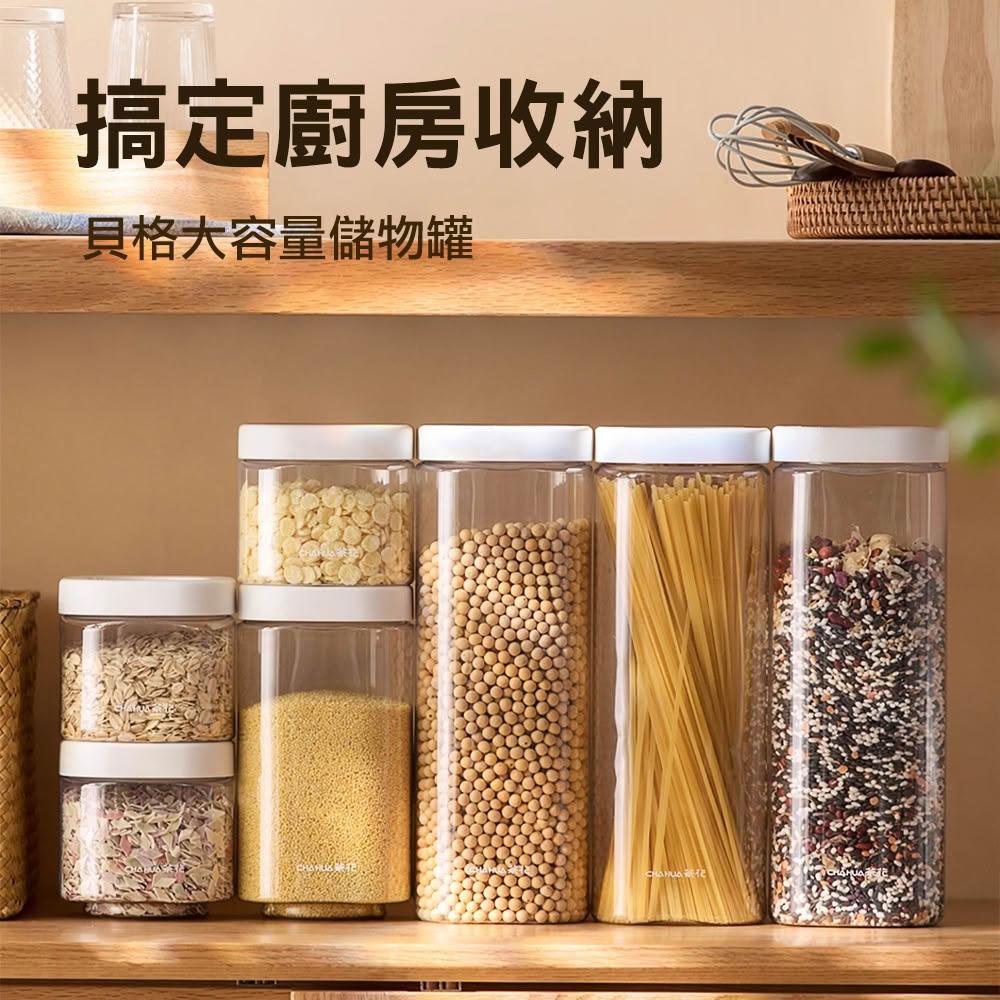 CHAHUA茶花貝格堆疊儲物罐 塑料 密封罐 五穀 雜糧 麵條 廚房 儲物罐 密封盒 家用 收納罐 透明罐子