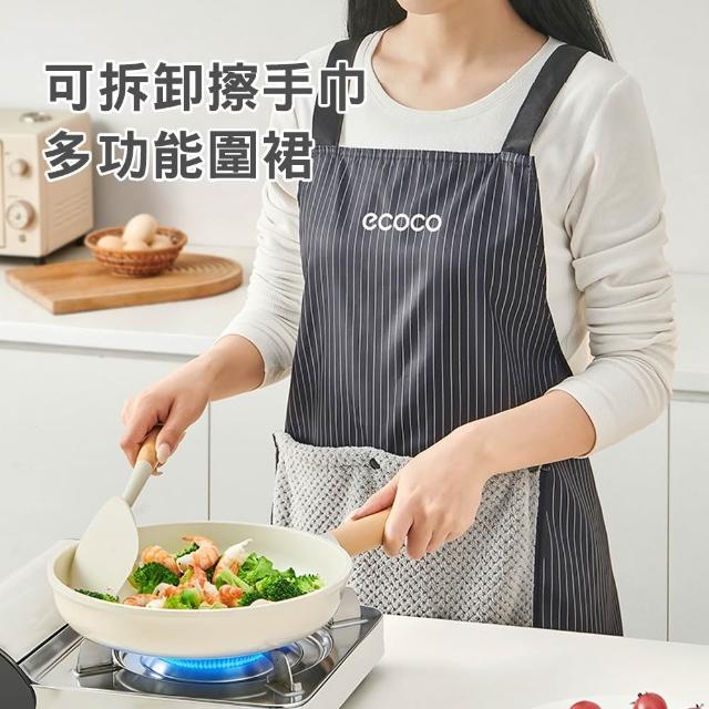 ecoco意可可擦手巾圍裙(滌綸條紋) 多功能 可拆卸 圍裙 家用 可擦手 水洗 餐飲 廚房 防水 防油 工作服