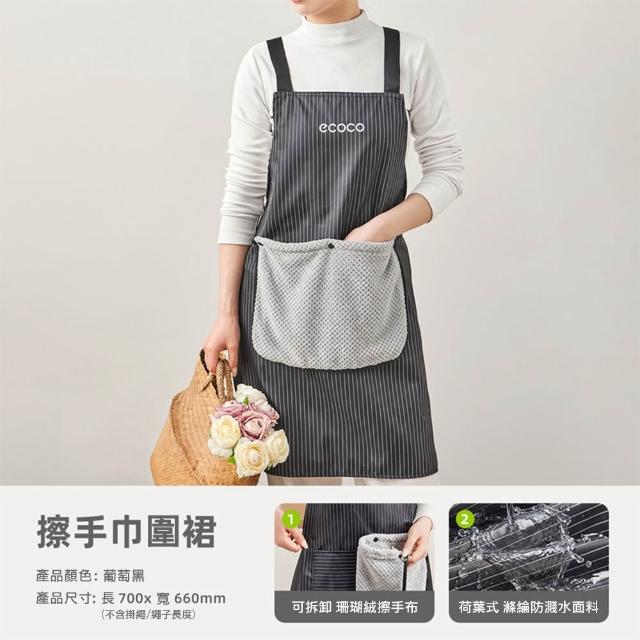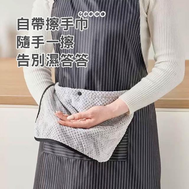 ecoco意可可擦手巾圍裙(滌綸條紋) 多功能 可拆卸 圍裙 家用 可擦手 水洗 餐飲 廚房 防水 防油 工作服