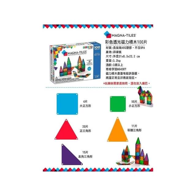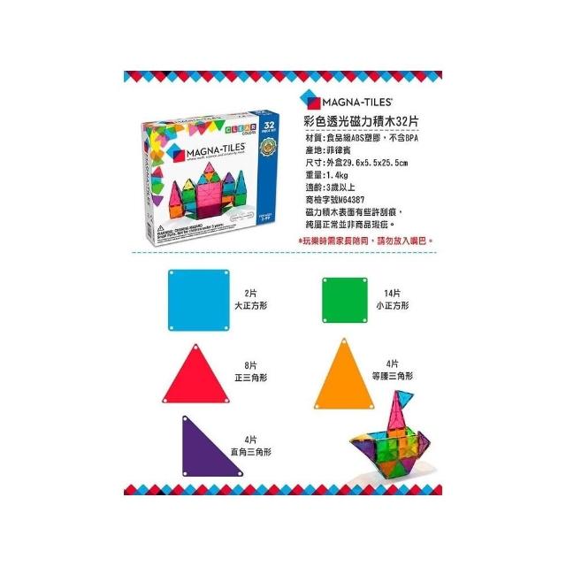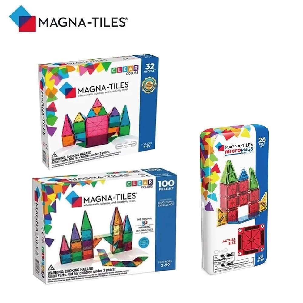 Magna-Tiles 彩色透光磁力積木|彩色透光磁力積木-32片/100片|迷你磁力積木旅行組-26片