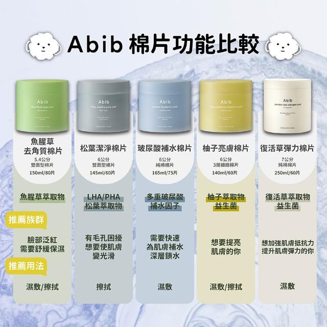 Abib 亞筆魚腥草舒緩去角質棉片 松葉潔淨棉片 柚子美白棉片 去角質 舒緩 淨化毛孔 淡斑