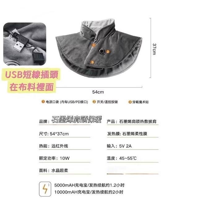 石墨烯肩頸保暖熱敷墊 發熱圍脖披肩 保暖毯 圍巾頸肩保暖熱敷墊USB 方便攜帶 隨身攜帶