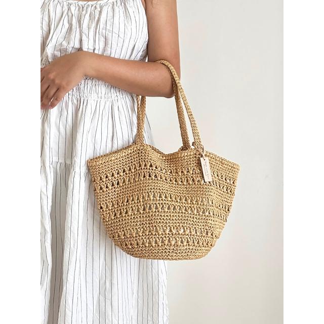 DIY教學影片材料包拉菲草簍空托特包 贈新手必看基本針法