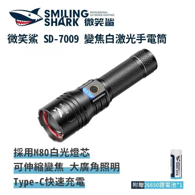 微笑鯊SD7009 變焦白激光手電筒(防水 強光手電筒 充電手電筒 伸縮手電筒 露營 登山 釣魚 戶外照明)