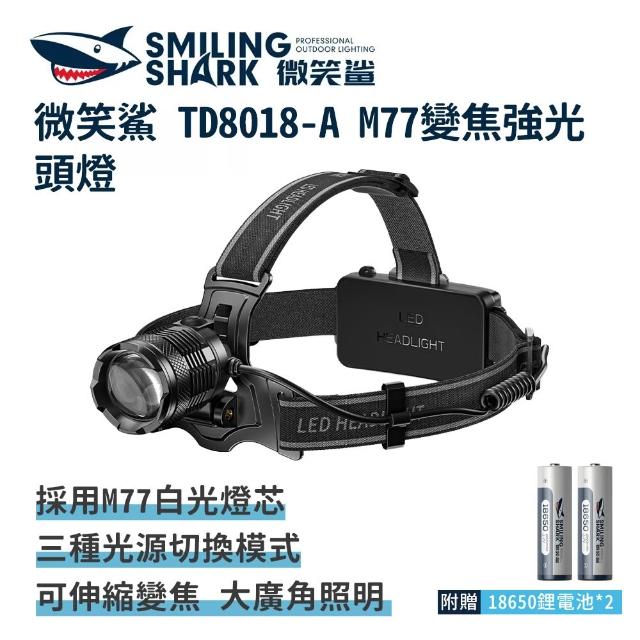 微笑鯊TD8018-A M77變焦強光頭燈(頭戴式頭燈 釣魚燈 夜釣燈 充電頭燈 工作頭燈 露營燈 登山 戶外照明)