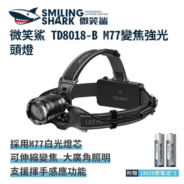 微笑鯊TD8018-B M77變焦強光頭燈(頭戴式頭燈 釣魚燈 夜釣燈 充電頭燈 工作頭燈 露營燈 登山 戶外照明)