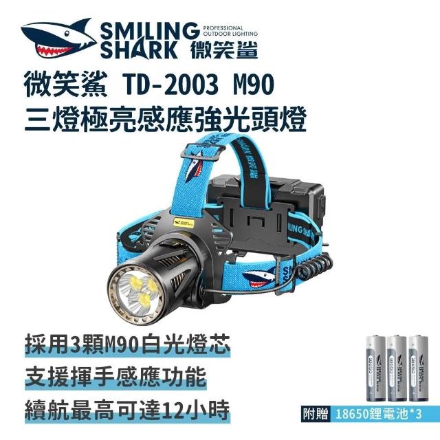 微笑鯊TD2003 M90 三燈極亮感應強光頭燈(頭戴式 釣魚頭燈 夜釣燈 充電頭燈 工作燈 登山 露營 照明)