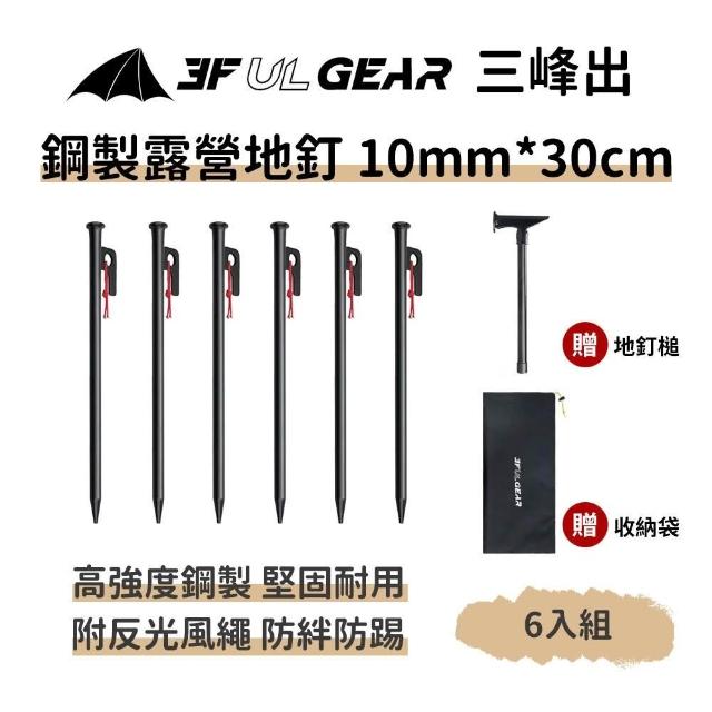 三峰出 高強度 鋼製地釘 10*30cm 6入 附收納袋地釘槌 營釘 露營釘 大黑釘 帳篷釘 天幕釘 鋼釘