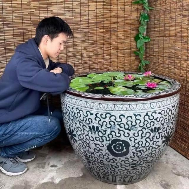 景德鎮陶瓷魚缸大缸養魚睡蓮荷花盆缸門海青花瓷仿古水缸庭院室外