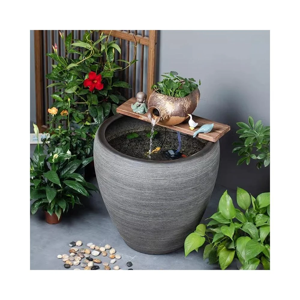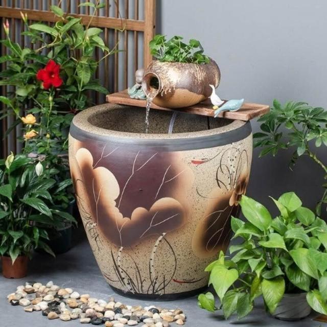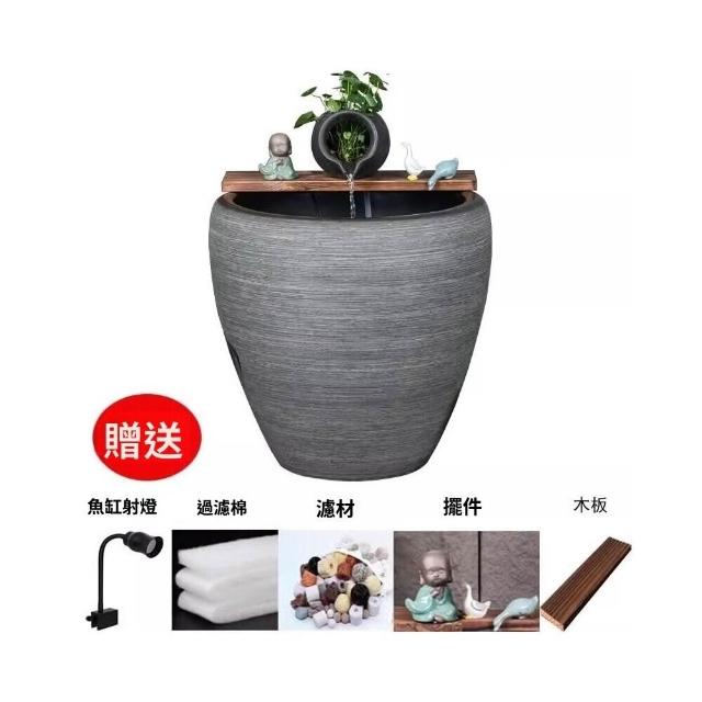 加高陶瓷大缸古法養魚缸客廳陽臺金魚缸陶罐循環流水造景老式水缸