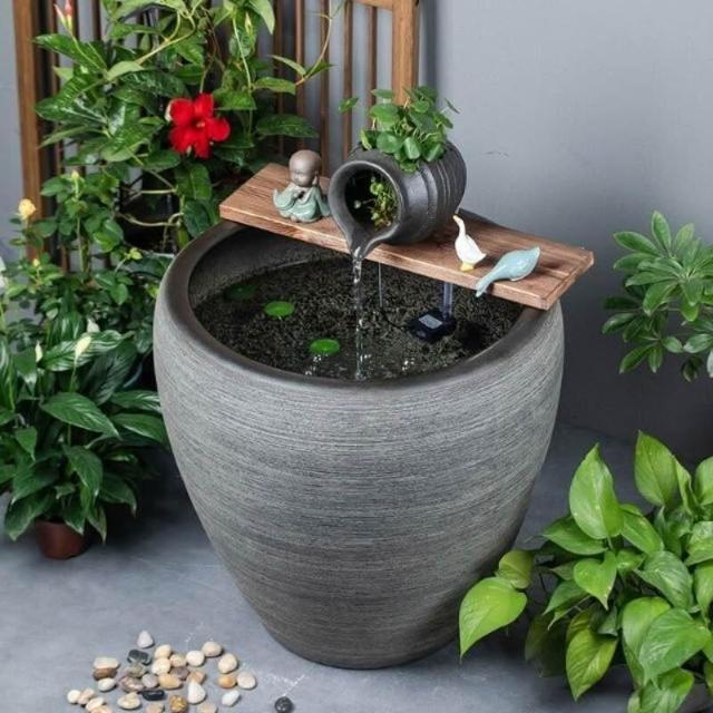 加高陶瓷大缸古法養魚缸客廳陽臺金魚缸陶罐循環流水造景老式水缸