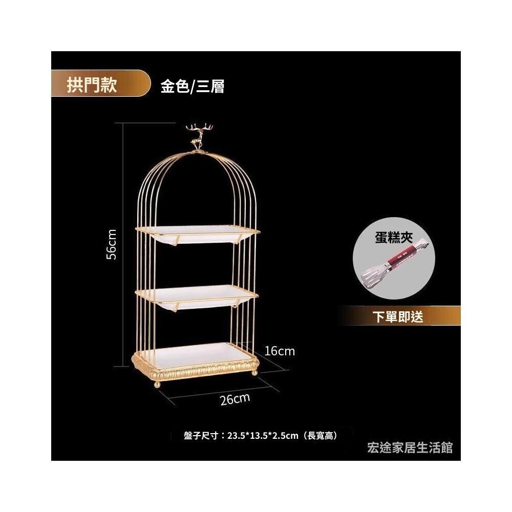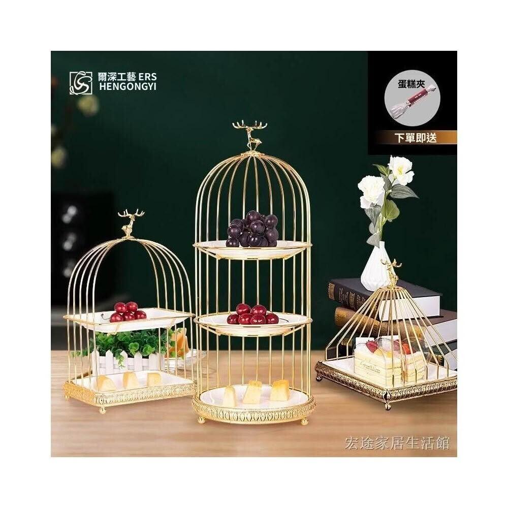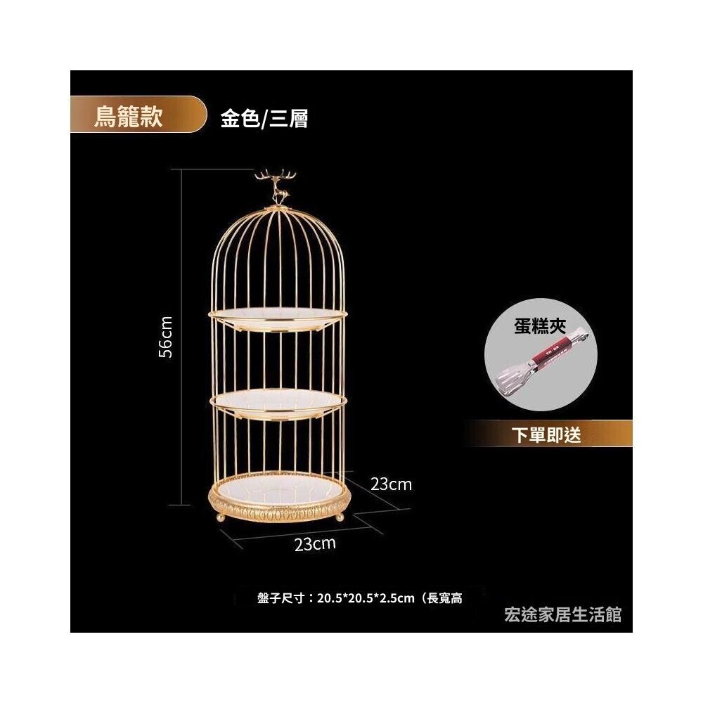 鳥籠點心架 甜點架 杯子蛋糕架 歐式輕奢下午茶甜品臺鐵藝水果盤甜點陶瓷展示架鳥籠點心架多層架