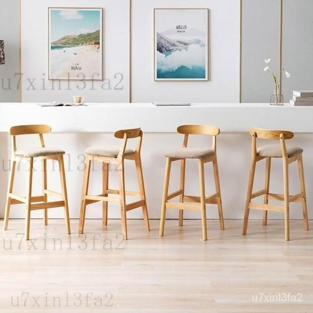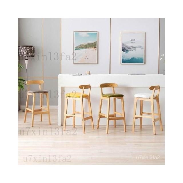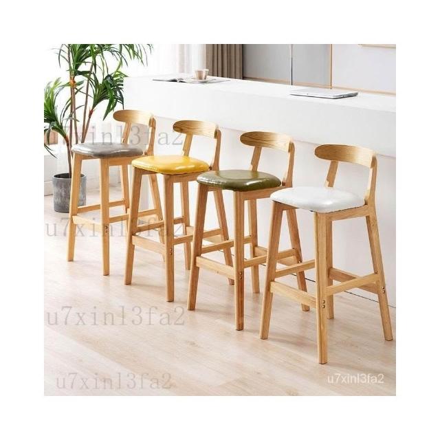 可開發票 全網最低價#免運#實木吧檯椅現代簡約傢用靠背吧凳酒吧椅高腳凳北歐奶茶店前臺椅子 高腳椅 吧臺椅 酒吧椅 吧檯