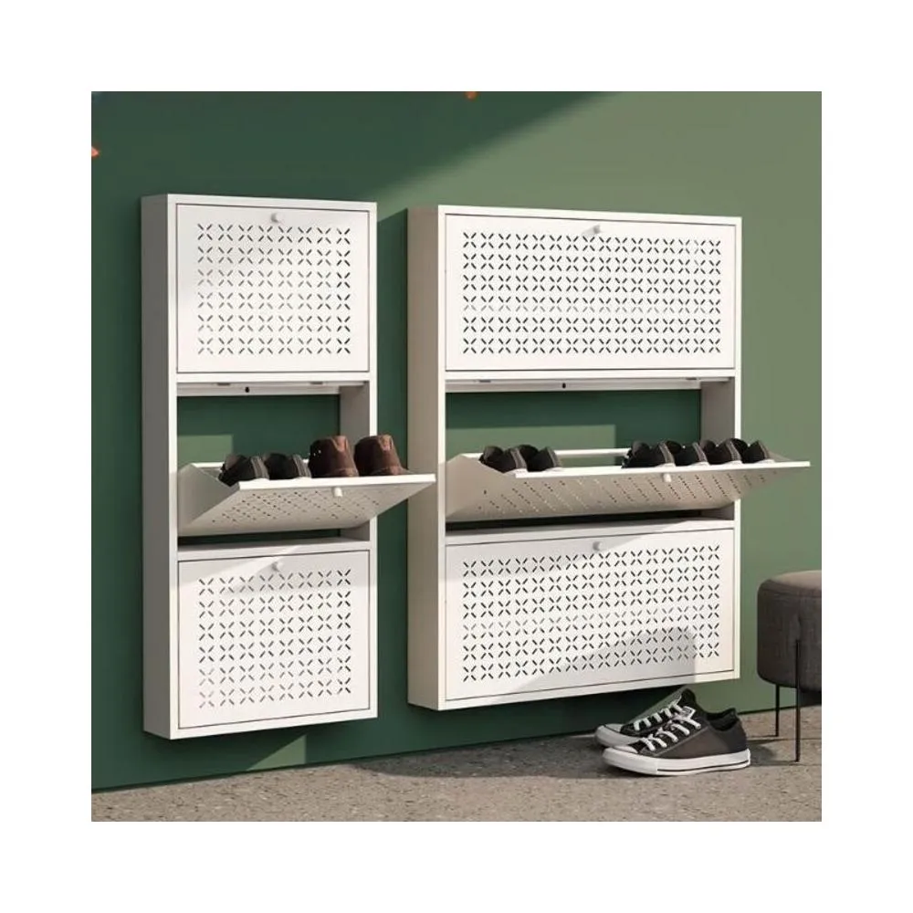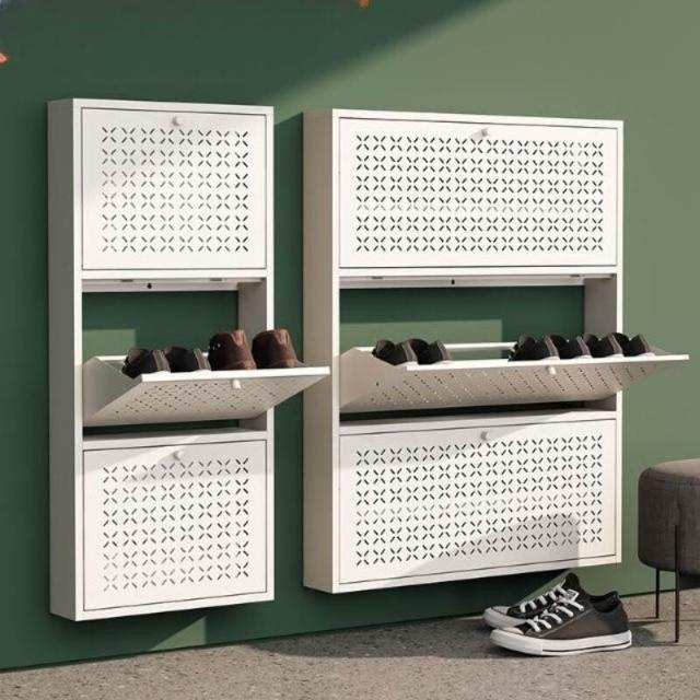 超薄鞋櫃 玄關鞋櫃 碳鋼鞋櫃 免組裝家用門口金屬鐵皮鞋櫃陽台櫃鋼製簡約翻斗鞋柜玄關柜鞋架
