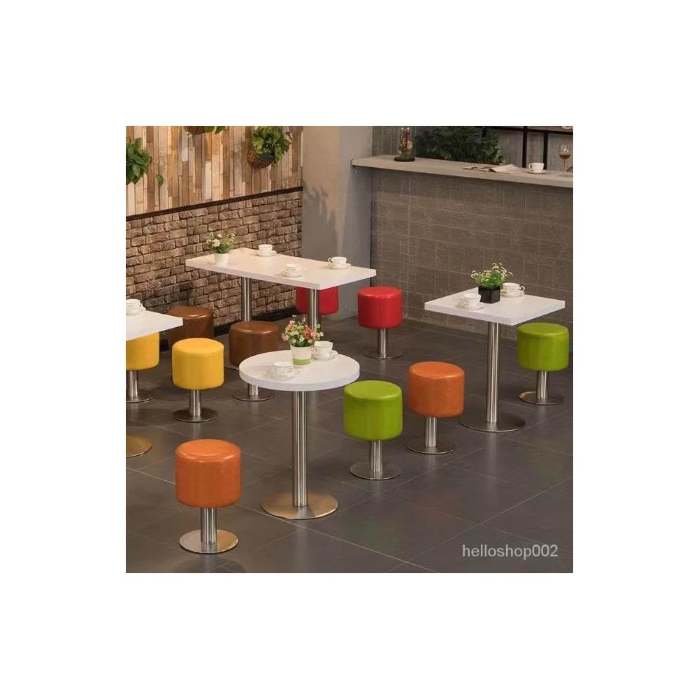 熱銷-免運 快餐店圓凳肯德基椅子商用餐飲店圓形凳子奶茶店桌椅網紅皮凳子