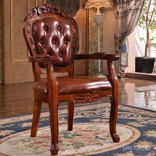 歐式餐椅美式椅子傢用靠背椅實木餐椅複古扶手椅酒店餐廳歐式椅子