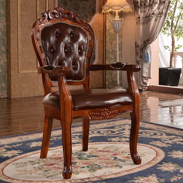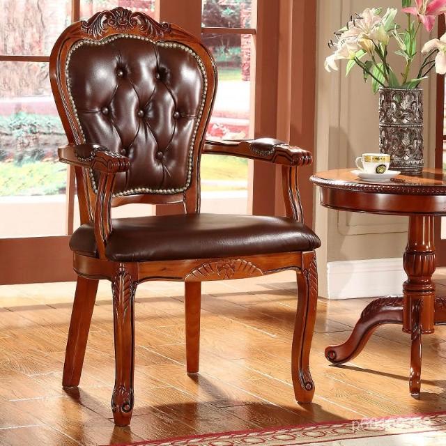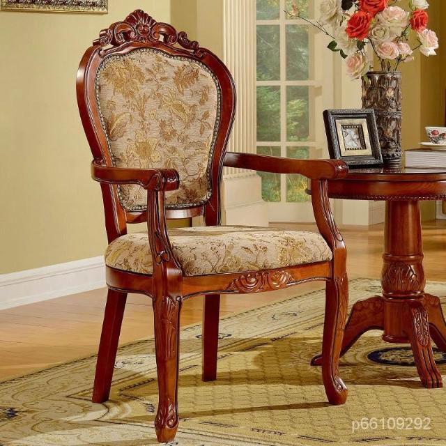 歐式餐椅美式椅子傢用靠背椅實木餐椅複古扶手椅酒店餐廳歐式椅子