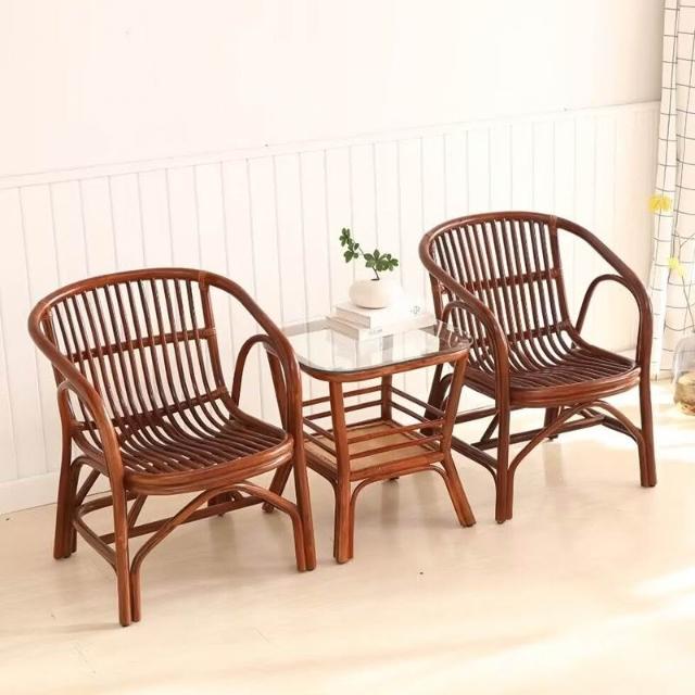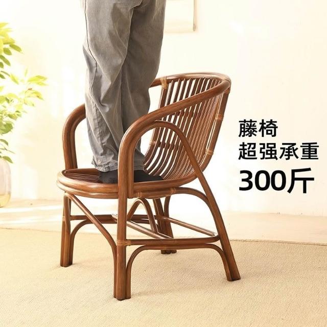 免運 藤椅 休閒椅 手工藤編太師椅休閒椅簡約椅子陽臺圈椅茶椅中式書房老人乘涼椅子