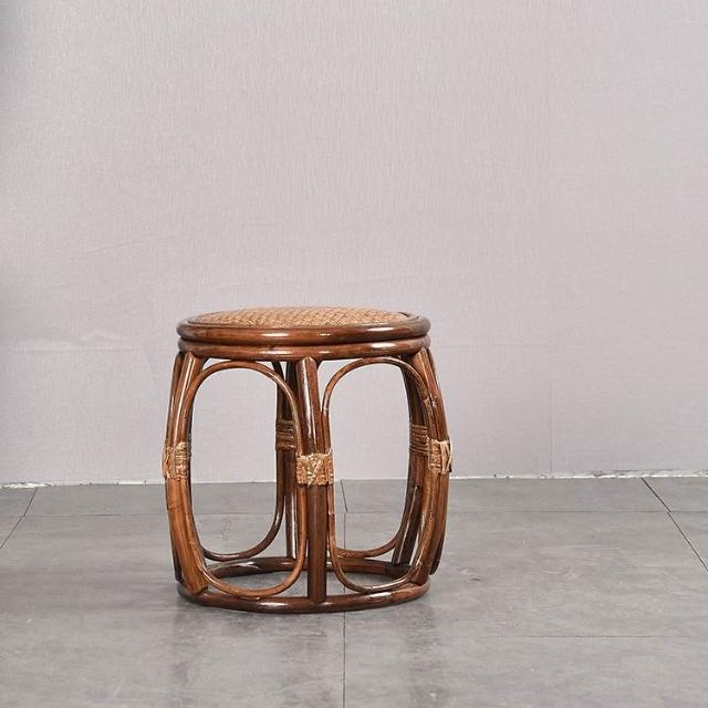 換鞋凳 化妝凳 梳妝凳 真藤編鼓凳高腰鼓凳單人餐廳凳 陽臺休閒喝茶凳子藤椅咖啡色藤凳