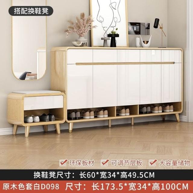 免運費/免關稅 北歐風原木色鞋櫃 家用入戶鞋櫃 門口鞋櫃 實木鞋櫃 帶換鞋凳 收納鞋櫃 櫃子 玄關鞋櫃 置物儲物鞋櫃