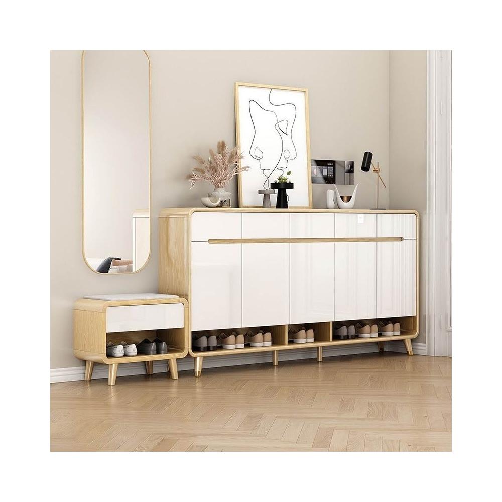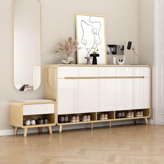 免運費/免關稅 北歐風原木色鞋櫃 家用入戶鞋櫃 門口鞋櫃 實木鞋櫃 帶換鞋凳 收納鞋櫃 櫃子 玄關鞋櫃 置物儲物鞋櫃
