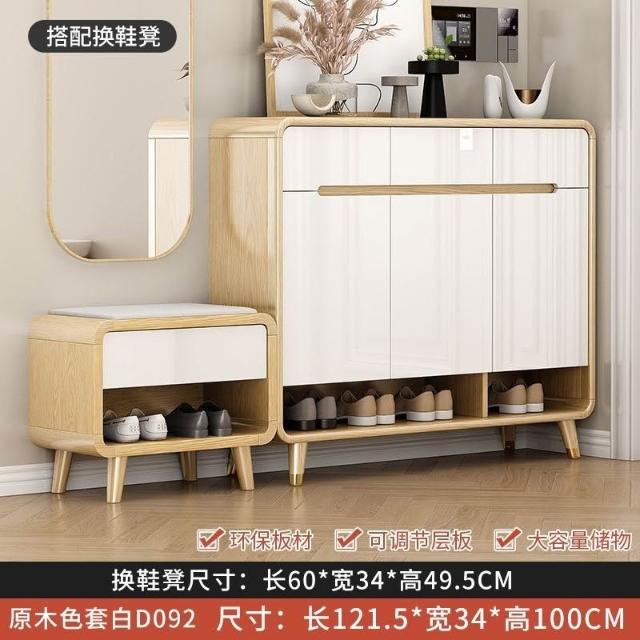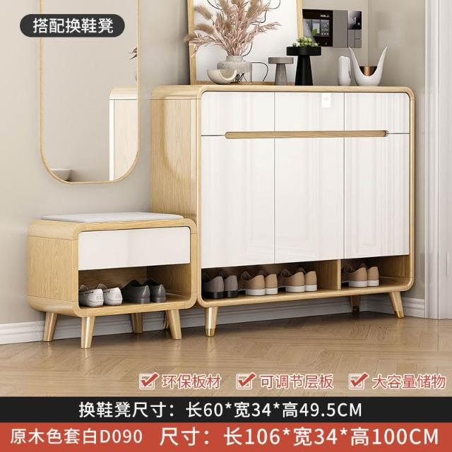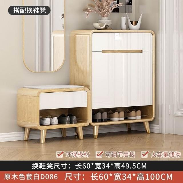 免運費/免關稅 北歐風原木色鞋櫃 家用入戶鞋櫃 門口鞋櫃 實木鞋櫃 帶換鞋凳 收納鞋櫃 櫃子 玄關鞋櫃 置物儲物鞋櫃