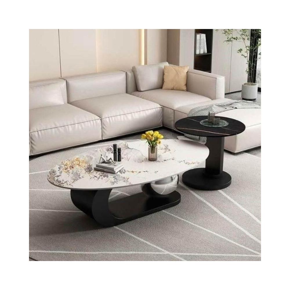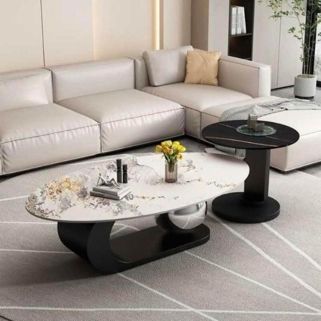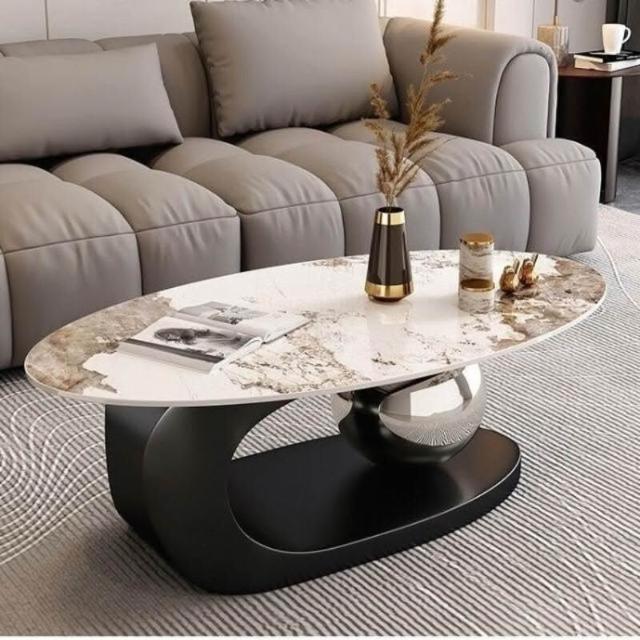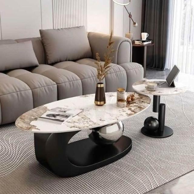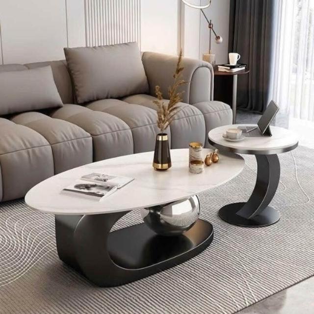 免運費/免關稅 新款巖板茶几 橢圓形茶几 輕奢現代茶几桌 客廳家用茶几 邊幾 高級感茶几桌 茶几組合 巖板茶几桌 桌子