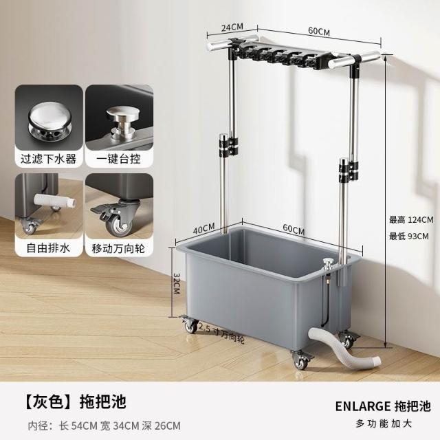 不銹鋼移動拖把池家用洗水池落地式墩布池水槽陽臺置物架商用 D0P6