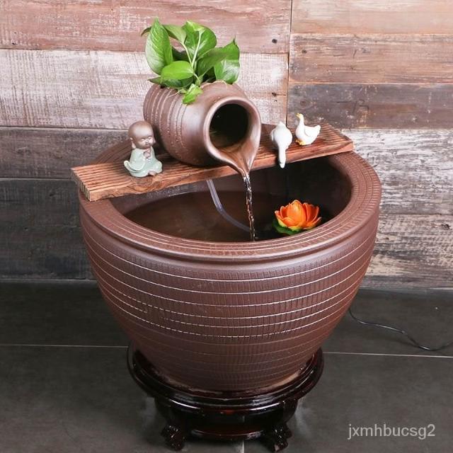 陶瓷魚缸 創意魚缸 造型養魚盆 陶瓷缸 庭院水缸 陶瓷大缸古法養魚缸客廳陽臺落地金魚缸陶罐循環流水造景老式水缸