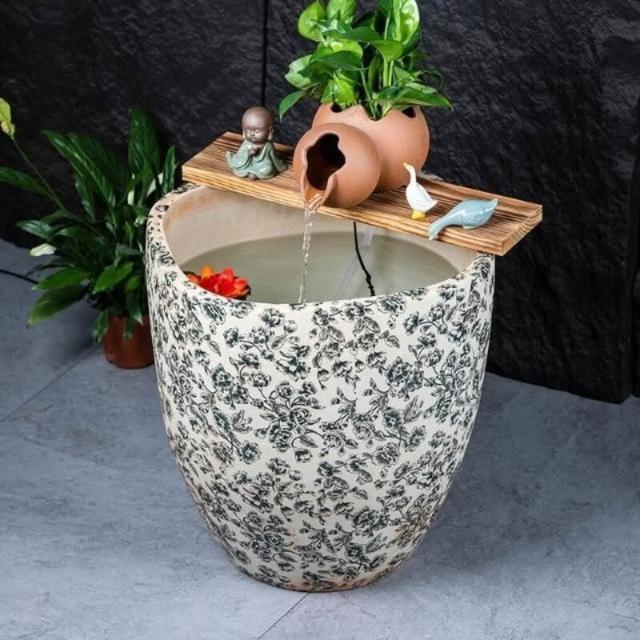 加高陶瓷大缸古法養魚缸客廳陽臺金魚缸陶罐循環流水造景老式水缸