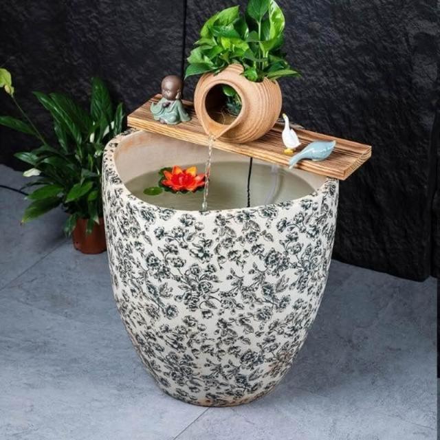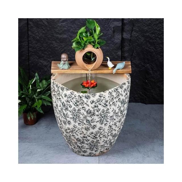 加高陶瓷大缸古法養魚缸客廳陽臺金魚缸陶罐循環流水造景老式水缸