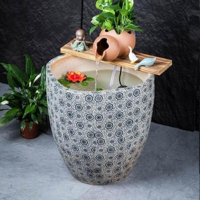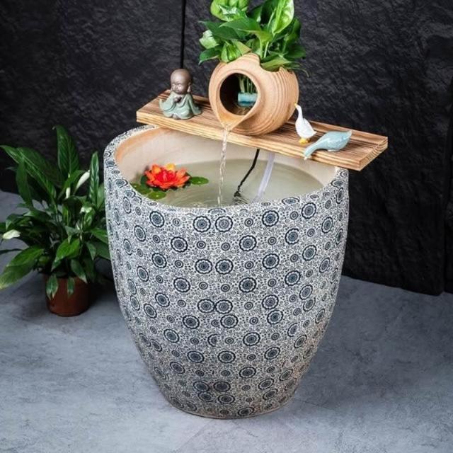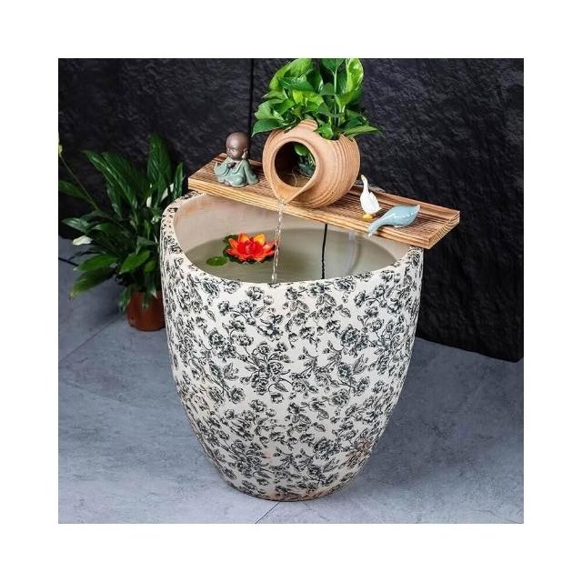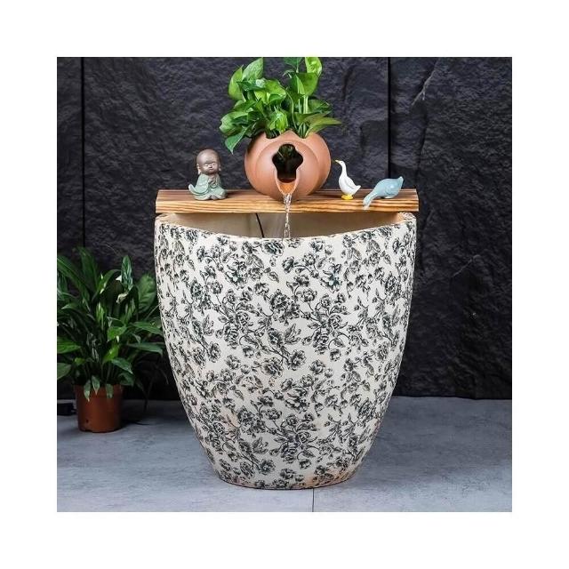 加高陶瓷大缸古法養魚缸客廳陽臺金魚缸陶罐循環流水造景老式水缸