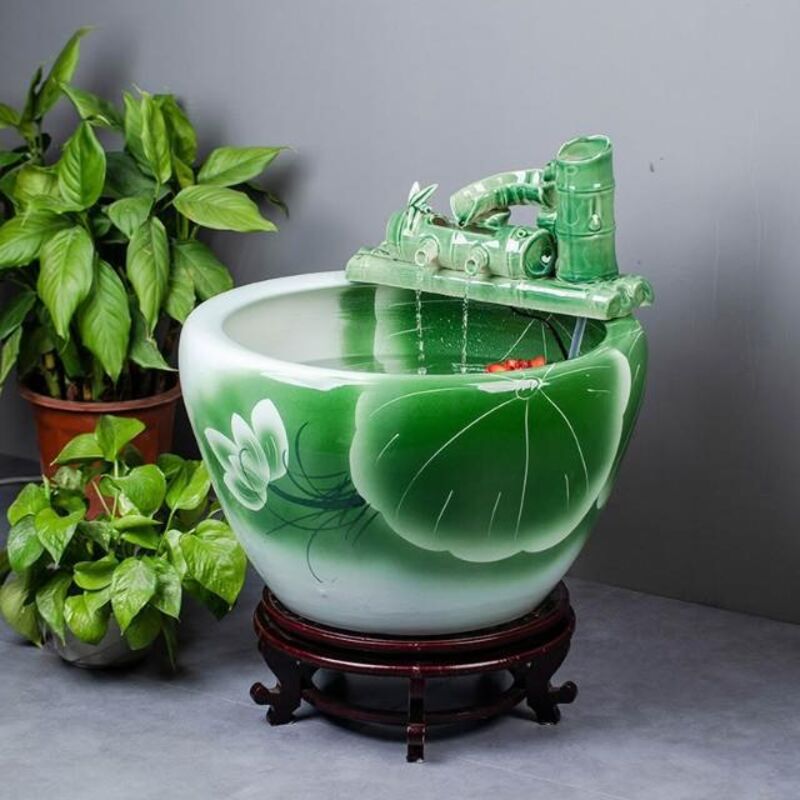 ✨廠家直銷✨ 大型陶瓷魚缸 流水擺件 水缸 陽台造景水循環大魚缸 辦公室客廳養魚缸 落地缸小魚缸