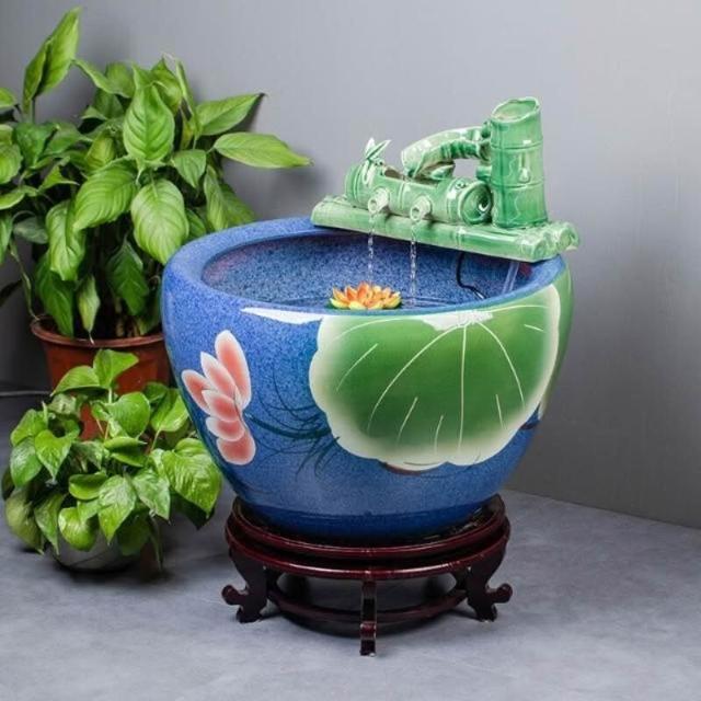 ✨廠家直銷✨ 大型陶瓷魚缸 流水擺件 水缸 陽台造景水循環大魚缸 辦公室客廳養魚缸 落地缸小魚缸