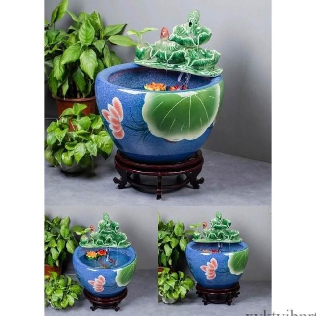 ✨廠家直銷✨ 大型陶瓷魚缸 流水擺件 水缸 陽台造景水循環大魚缸 辦公室客廳養魚缸 落地缸小魚缸