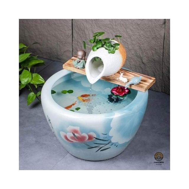 陶瓷大缸 古法养鱼缸 客厅阳台落地 循环流水造景 老式大型陶罐 迷你鱼池水族箱生态鱼缸 喷泉水循环大水缸