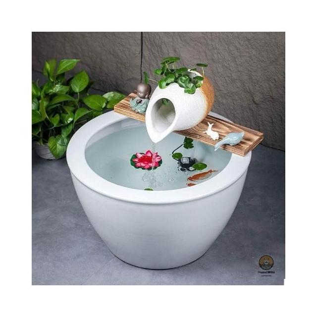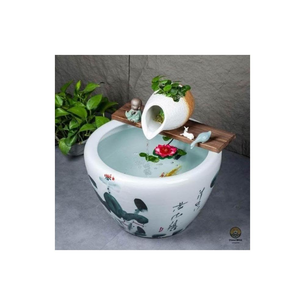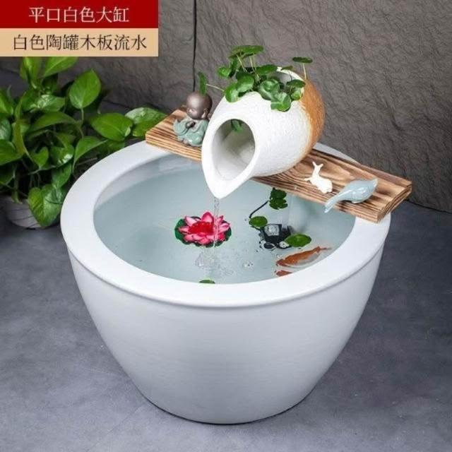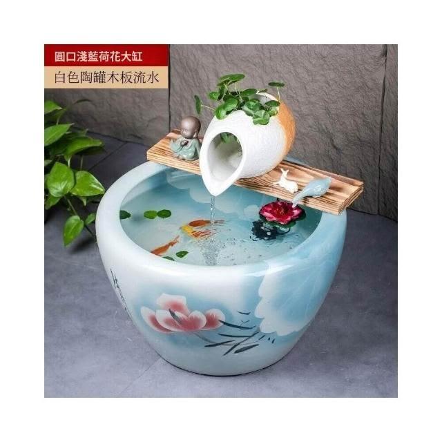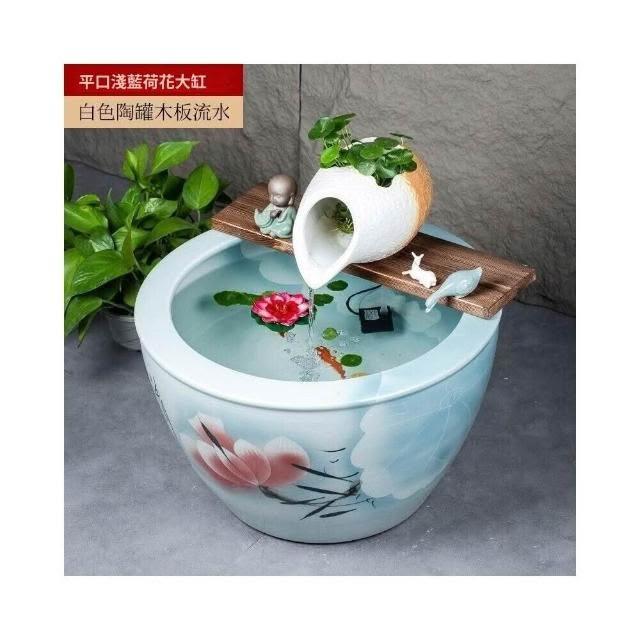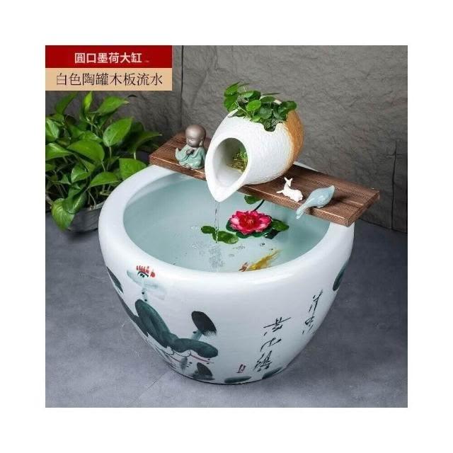 陶瓷大缸 古法养鱼缸 客厅阳台落地 循环流水造景 老式大型陶罐 迷你鱼池水族箱生态鱼缸 喷泉水循环大水缸
