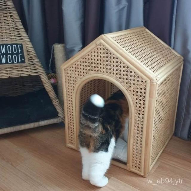 熱銷 可開發票 🐾寵物小屋 日式藤編寵物窩 貓窩狗窩 四季通用ins風博美小型貓咪狗狗藤編床