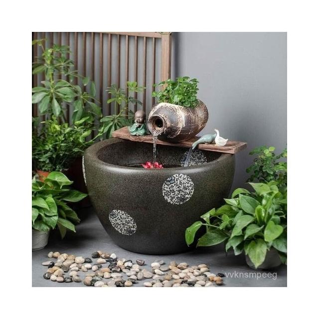 ✨廠家直銷✨大型陶瓷魚缸 流水噴泉魚缸陶罐水循環造景古法魚缸 客廳陽臺落地大水缸水族缸 水族箱 生態魚缸 迷你魚缸魚池