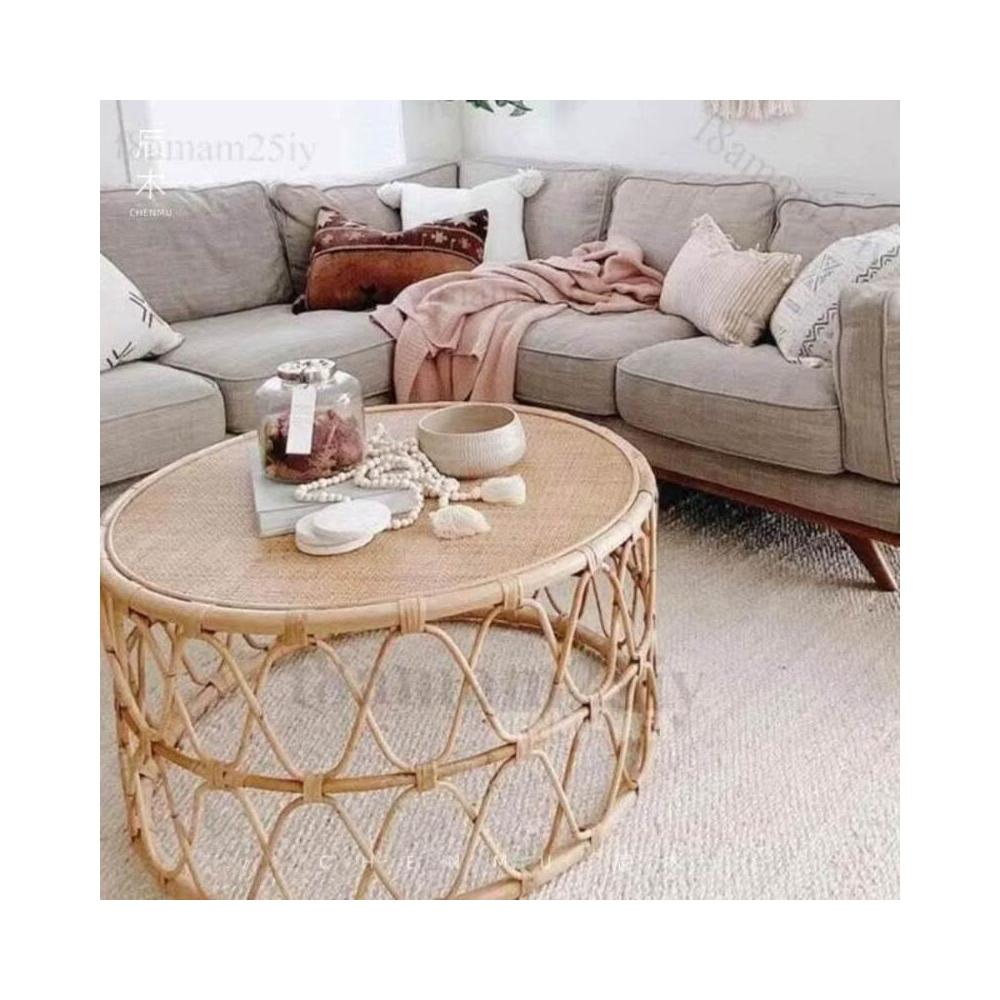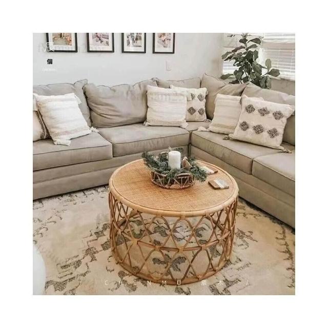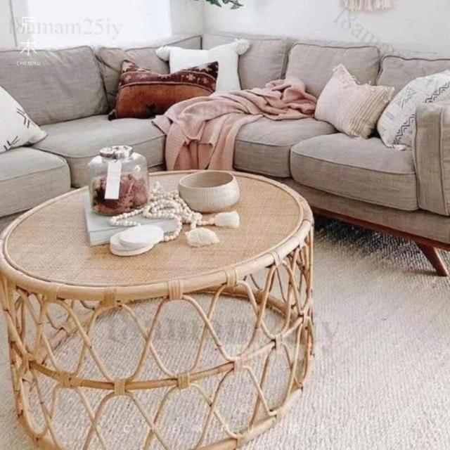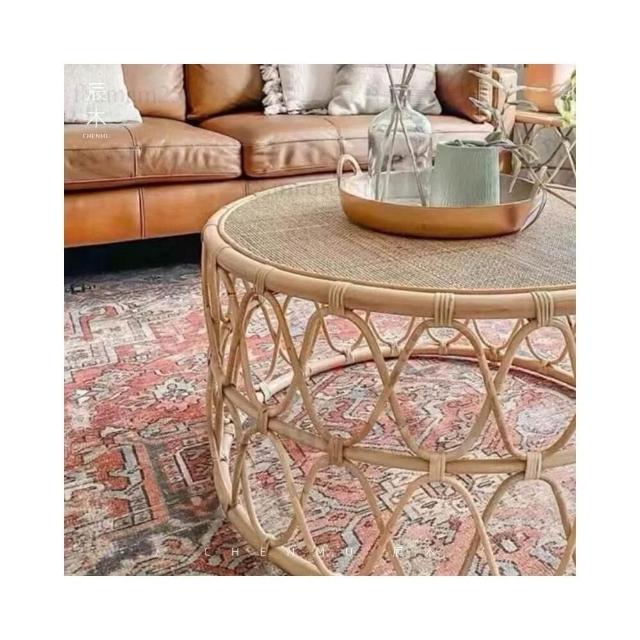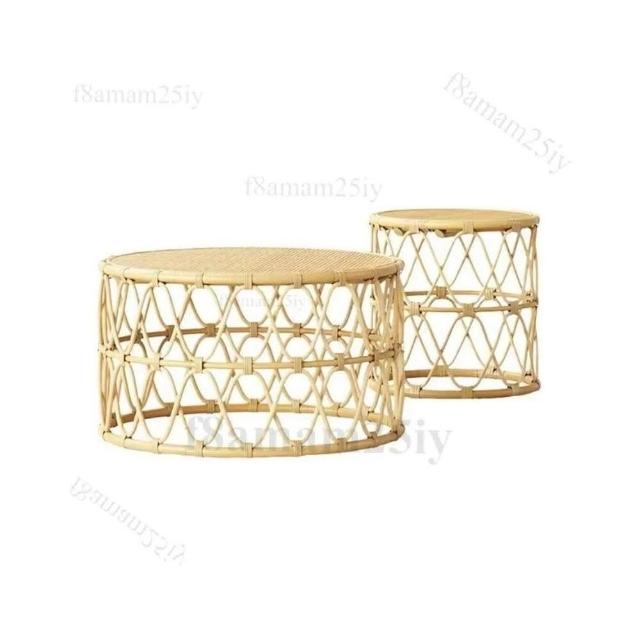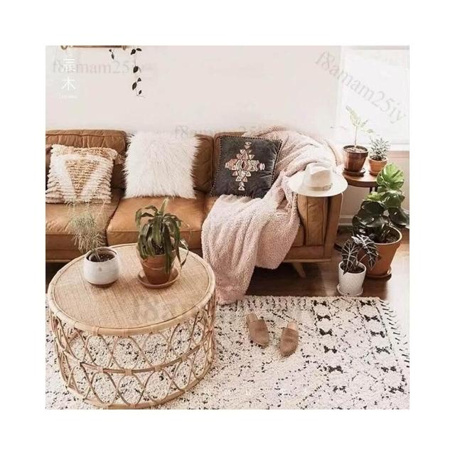 藤编茶几侘寂风日式ins民宿圆形角几简约边几客厅卧室小户型沙发 茶几 小桌子 矮桌 泡茶桌 茶桌 邊几-聯勝