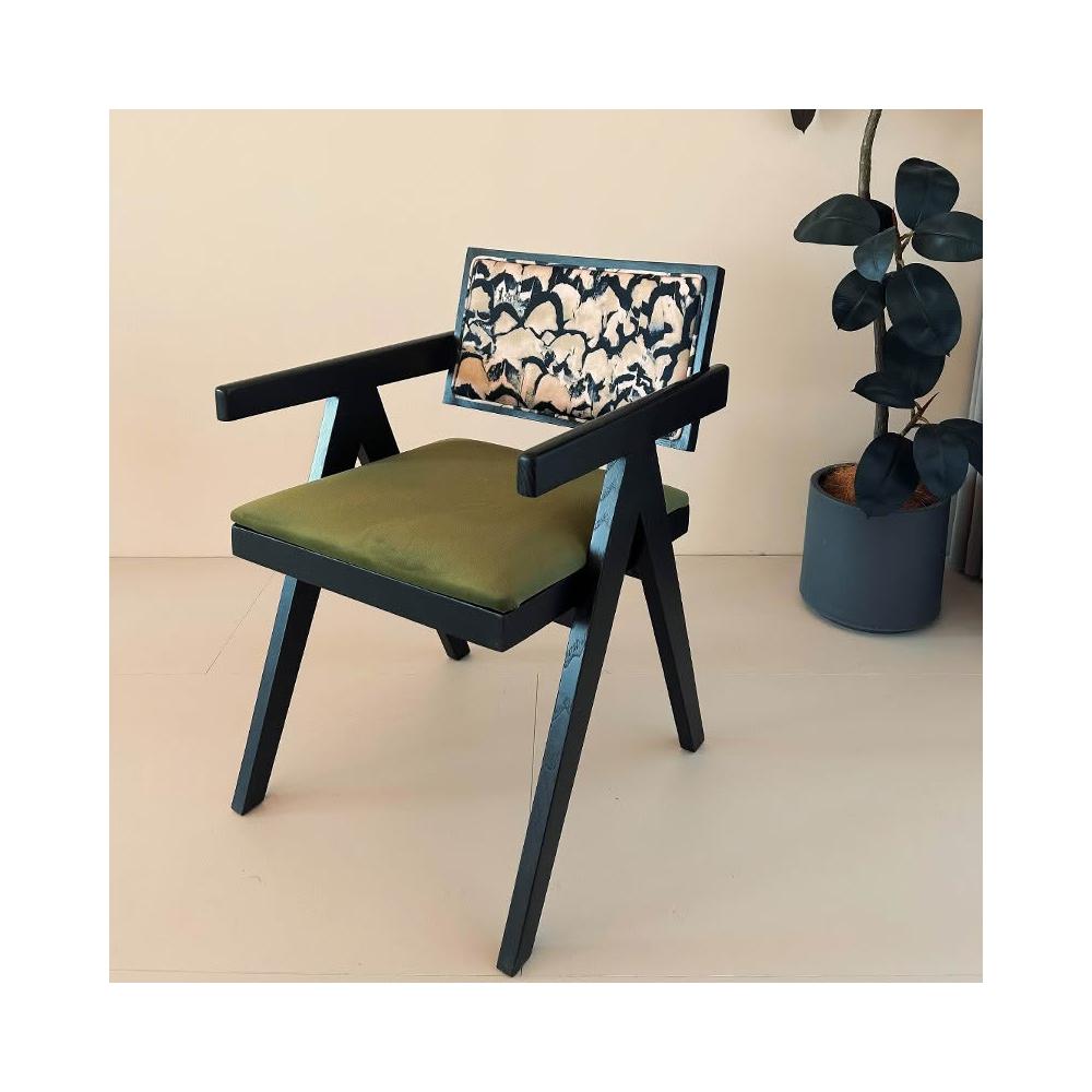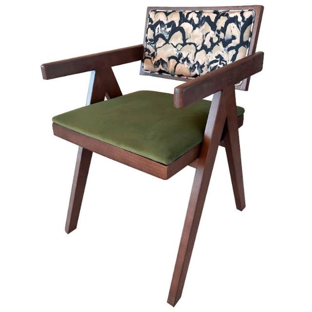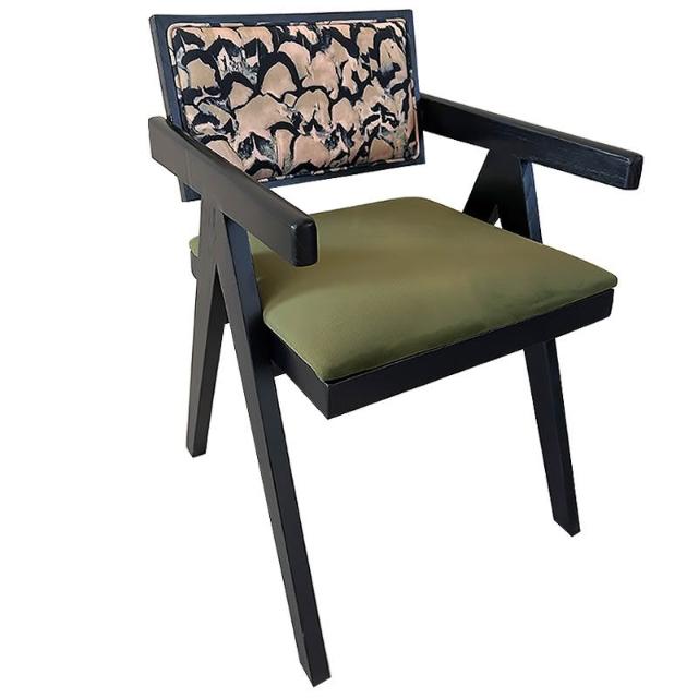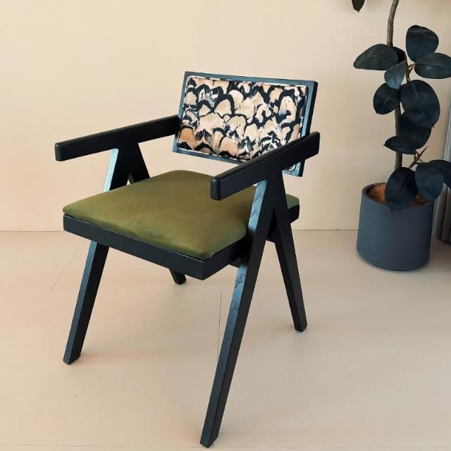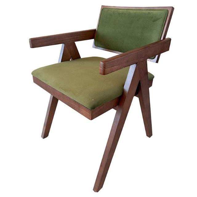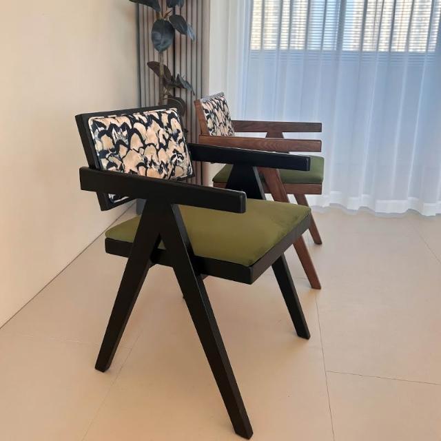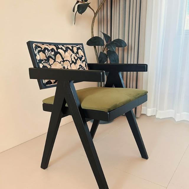 北歐風 實木餐椅 中古設計師款 臥室書房客廳家用 小戶型 昌迪加爾扶手椅 復古 休閒 書房高顏值絨布靠背椅子