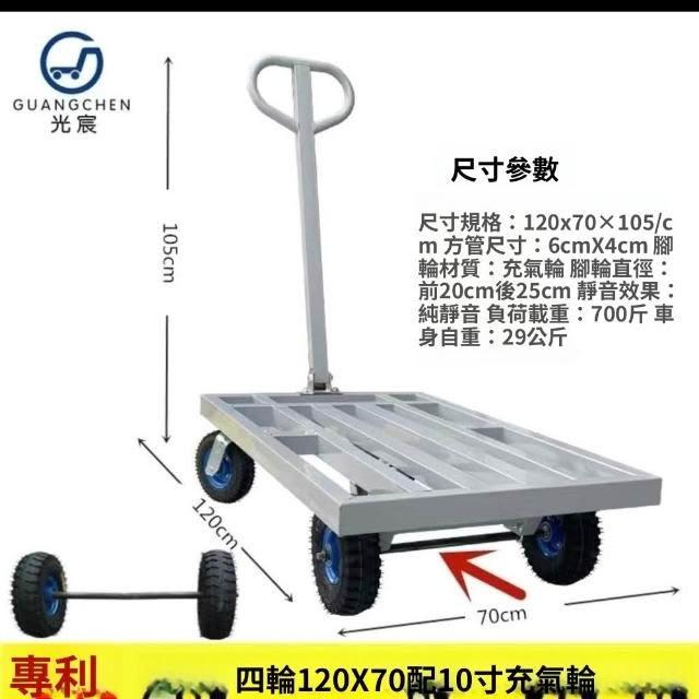 限時特惠 加厚方管平闆車拖車四輪手推車工地倉庫搬運車折疊大輪拉貨小推車 拉貨車 拖車 小拉車 折疊拉車