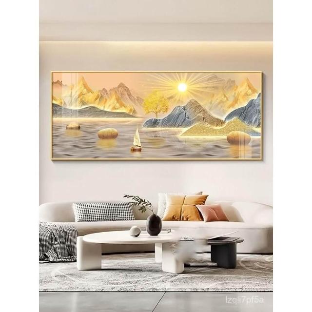 全網最低價 日出東方客廳裝飾畫東牆背有靠山沙發背景掛畫旭日東昇山水畫壁畫 高檔晶瓷畫