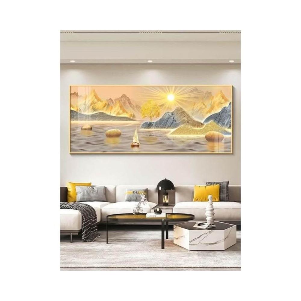 全網最低價 日出東方客廳裝飾畫東牆背有靠山沙發背景掛畫旭日東昇山水畫壁畫 高檔晶瓷畫
