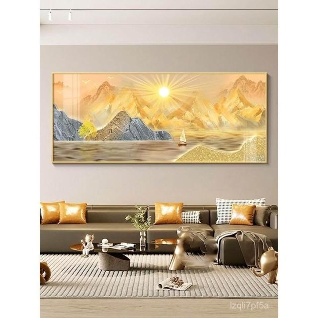 全網最低價 日出東方客廳裝飾畫東牆背有靠山沙發背景掛畫旭日東昇山水畫壁畫 高檔晶瓷畫