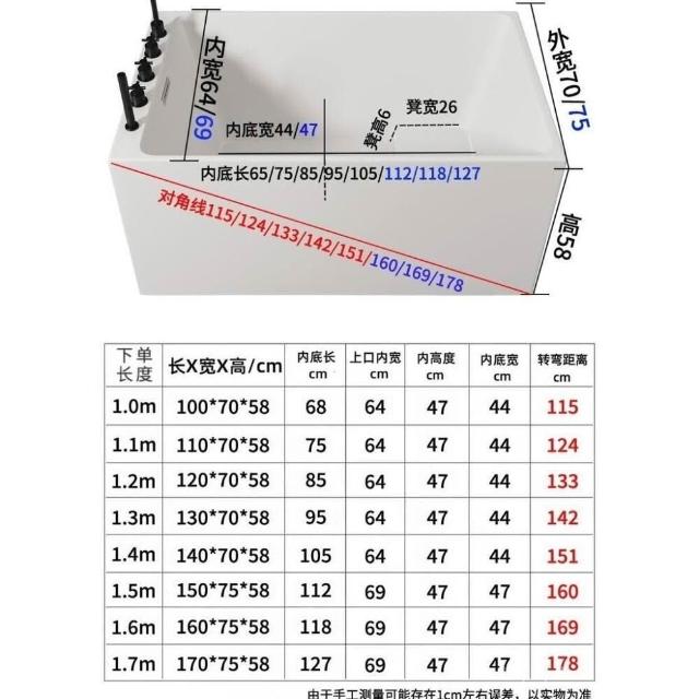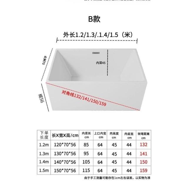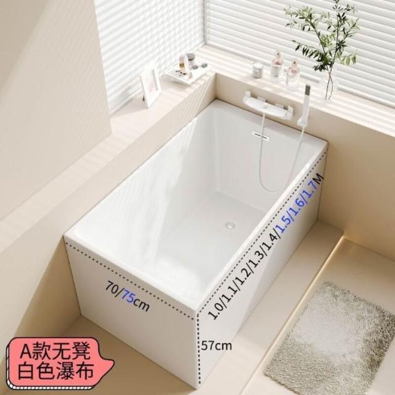 免運 浴缸 壓克力浴缸 深泡日式 方形浴缸 無縫一體 小戶型家用加深亞克力獨立式浴缸 迷你可移動式浴盆