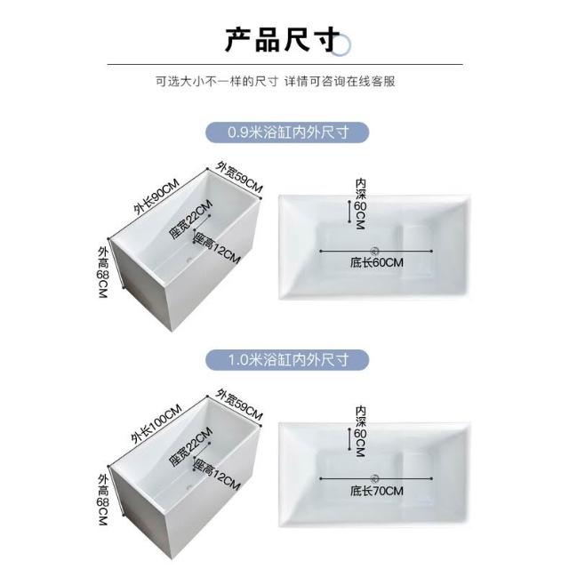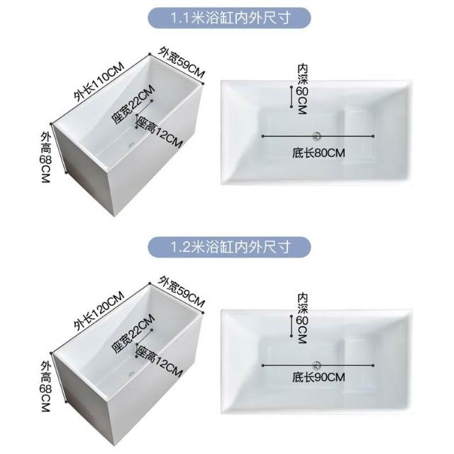 可開發票-熱銷-超優惠 亞克力浴缸 泡澡桶 無縫一體 小浴缸傢用 小戶型 日式深泡 獨立一體式 可移動坐式 超迷你 方缸
