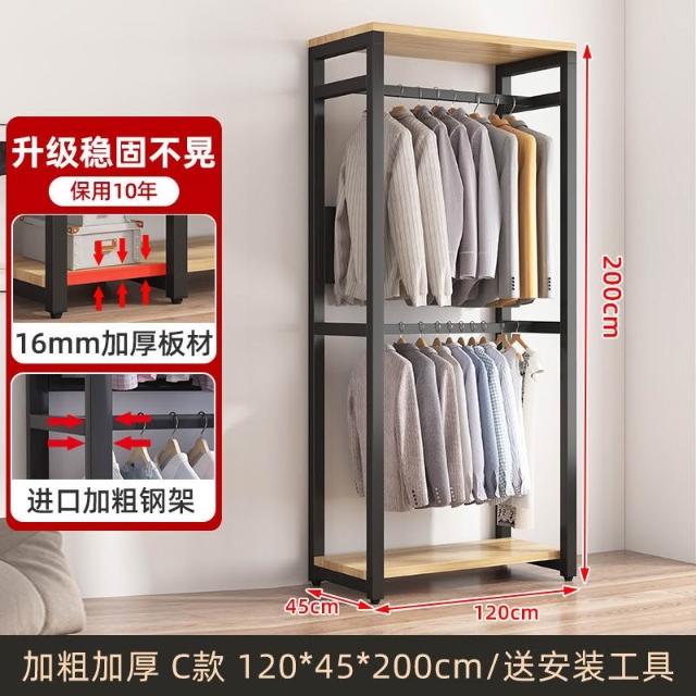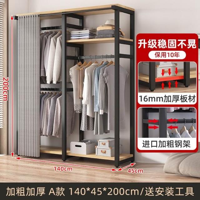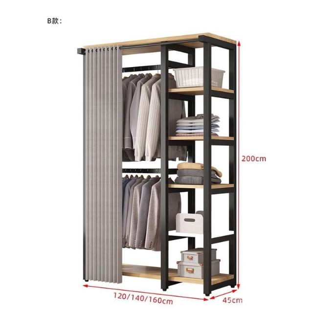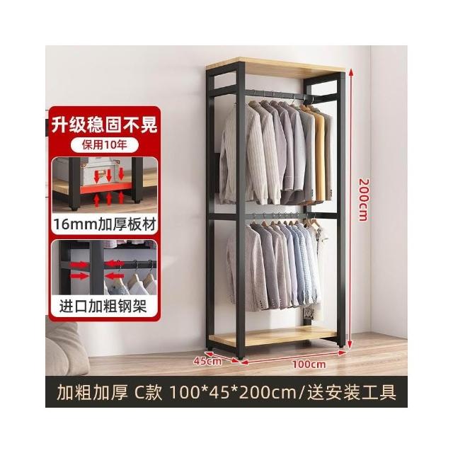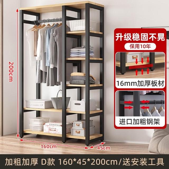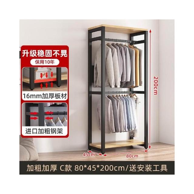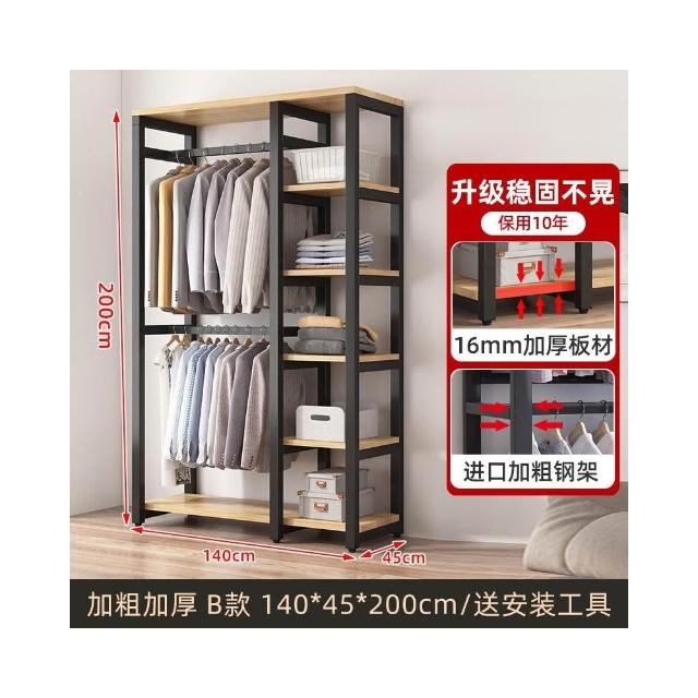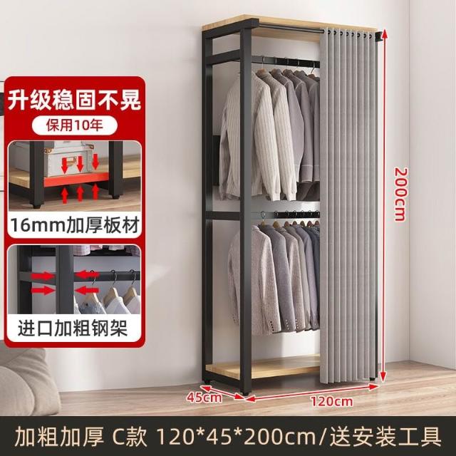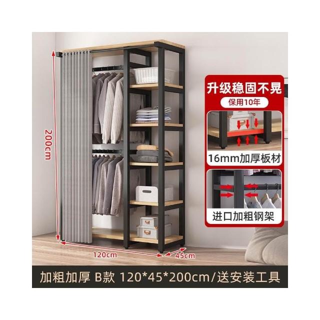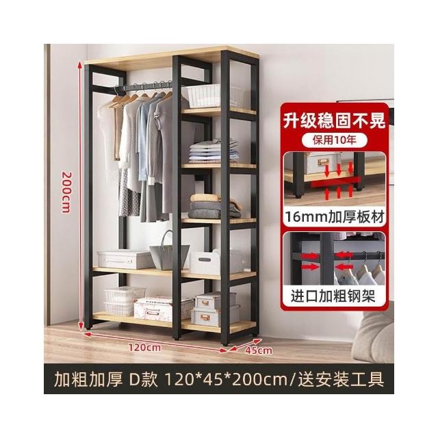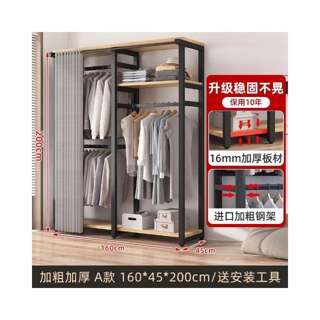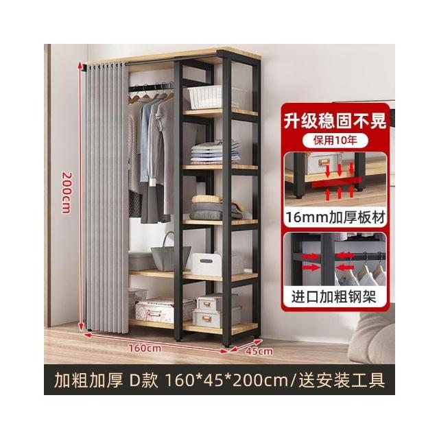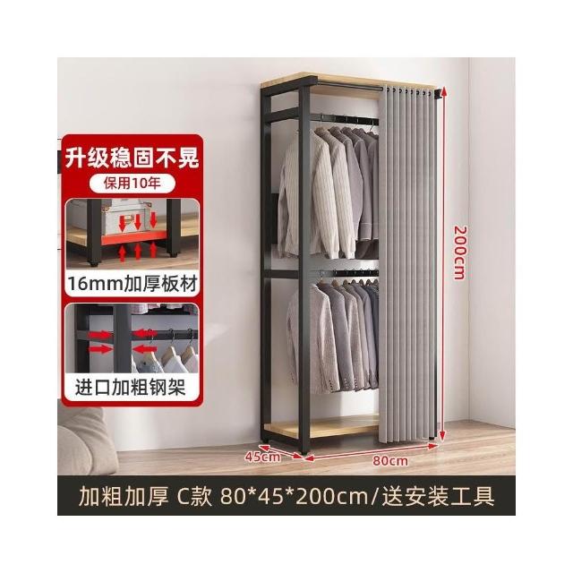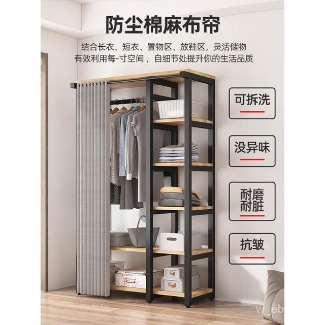 開放式衣櫃傢用臥室簡易組裝衣櫃子出租房用經濟型全鋼架金屬衣櫥 高強度 安裝簡單