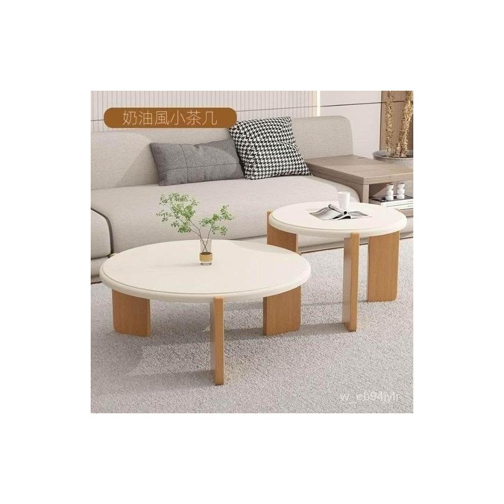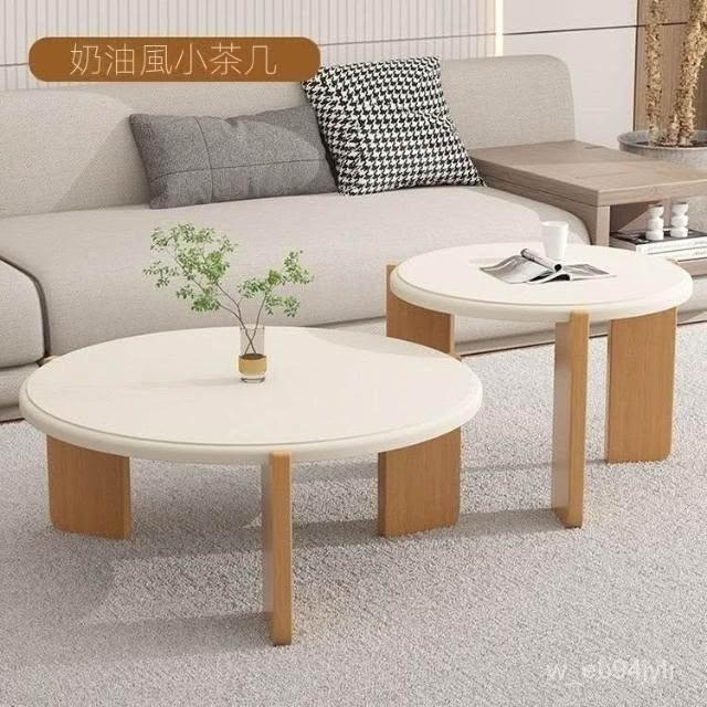 奶油風實木圓形茶幾傢用客廳小戶型北歐宅寂風桌子現代簡約邊角幾日式實木圓形茶幾現代極簡約邊角幾客廳傢用奶油宅寂風小戶型桌子