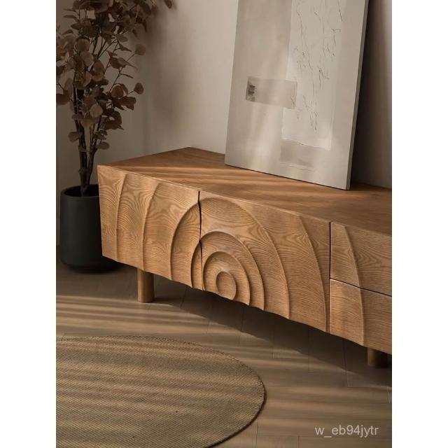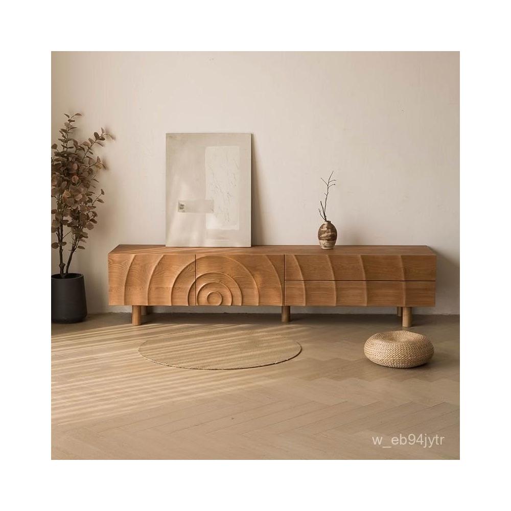 北歐實木電視櫃 設計師民宿原木電視 櫃侘寂風小戶型傢用 客廳落地櫃